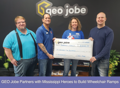GEO Jobe CEO David Hansen (far right) and COO Daniel Menikheim (far left) present a check to MISSISSIPPI Heroes Executive Director Katherine Sutton (center right) and Board President Eric Alvarez (center left). GEO Jobe is proud to announce a new partnership with a local nonprofit to build wheelchair ramps for residents throughout Mississippi. GEO Jobe […]